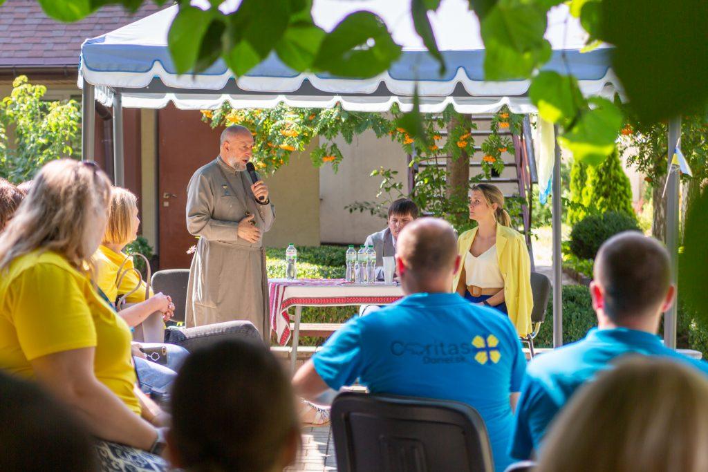 Вітання від голови Дніпропетровської обласної ради Миколи Лукашука співробітникам фонду та нагородженим передали його радники – Аріна Пустова та Андрій Соколов. Аріна Пустова відзначила, що благодійні організації – це надійний тил, бо саме гуманітарна допомога дає можливість в буквальному сенсі вижити сотням тисяч людей, які страждають від війни. За словами Андрія Соколова для обласної ради є дуже цінною співпраця з благодійним фондом Карітас Донецьк в Дніпрі. Завдяки його роботі була надана допомога багатьом громадам області. А попереду – ще більше спільних планів, – робота триває.